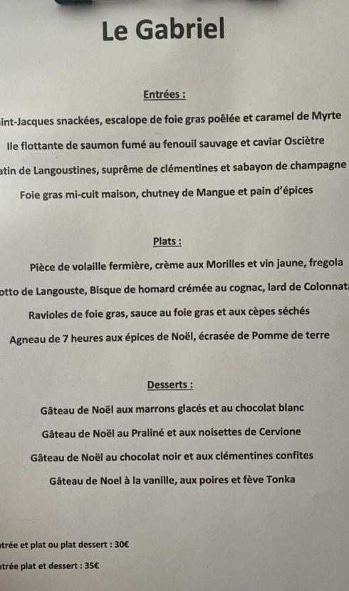 MENU DE NOEL / LE GABRIEL COTE TRAITEUR
