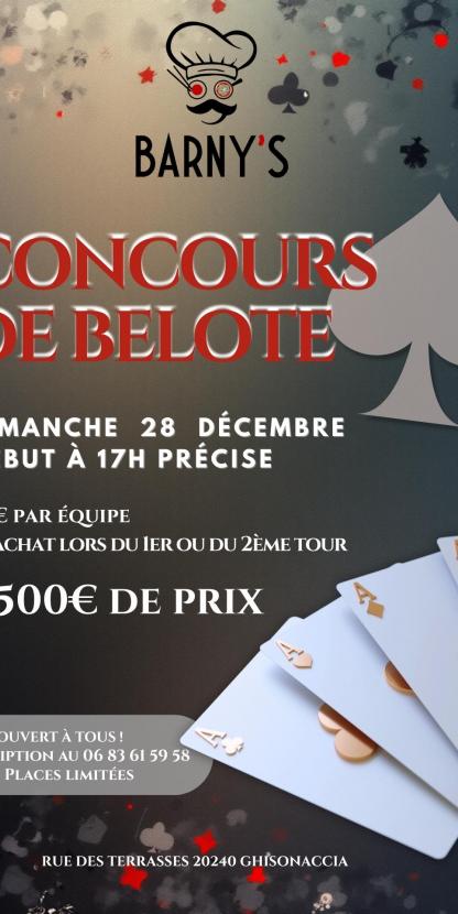 CONCOURS DE BELOTE /AU BARNY'S DIMANCHE 28 DECEMBRE