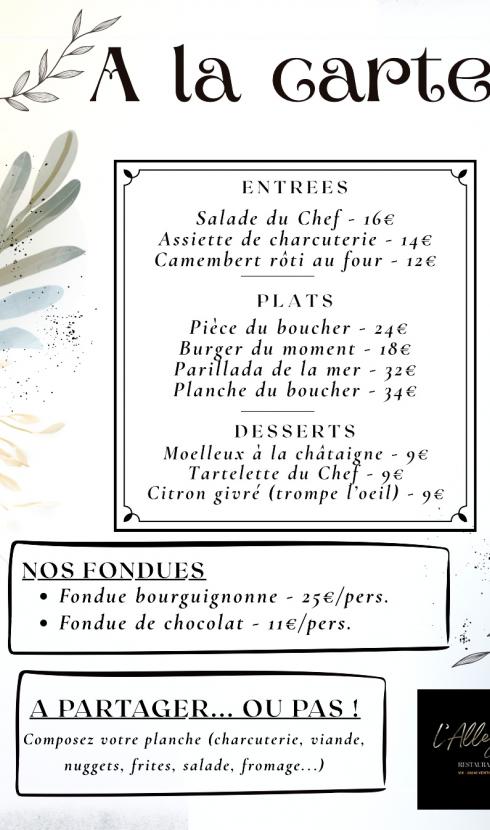 LA CARTE DU WEEK-END /RESTAURANT L'ALLEGRIA