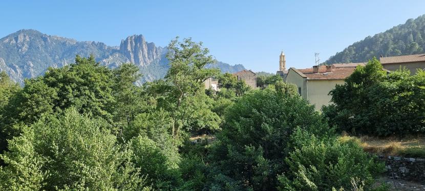 Le sentier se détourne sur la gauche, pour remonter en zigzag jusqu'au plateau ombragé de Petra di Ripa et profiter de la vue magnifique sur le village et sur la chaîne du Renosu.