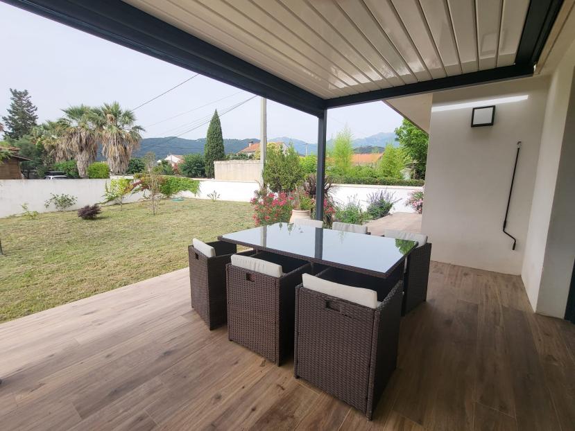 Belle maison d'architecte de 141 m², 3 suites parentales, tout confort, wifi, climatisation, terrasse bioclimatique, jardin. Entre mer et montagne à 6 km de la plage de Calzarellu et à 5km de la station thermale de Pietrapola les bains et de piscines naturelles dans la rivière de l'Abatescu