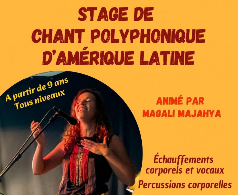 Dimanche 14 décembre, de 14h à 16h, à l’Ecole de Musique Anima (Casamuzzone) : Stage de chant polyphonique d’Amérique Latine, animé par Magali.Après avoir fait des échauffements corporels et vocaux, Magali vous transmettra des chants sud-américains. Échauffements corporels et vocaux. Les stages permettront également de travailler les percussions corporelles, l’improvisation polyphonique, etc.À partir de 9 ans, tous niveaux.Prochaines sessions : dimanche 11 janvier de 14-16h / dimanche 8 mars, dimanche 12 avril, dimanche 3 mai, dimanche 14 juin : de 16-18hTarif: Adulte : 20 €, enfant : 10€Réservation obligatoire – 15 personnes maximumRéservations au 04 95 56 26 67 ou sur www.centreculturelanima.fr