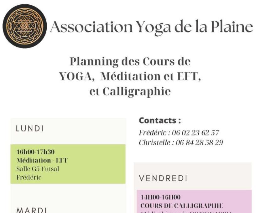 L’association YOGA DE LA PLAINE, très active sur notre commune, propose des cours collectifs de Hatha Yoga dans la salle du G5 Futsal