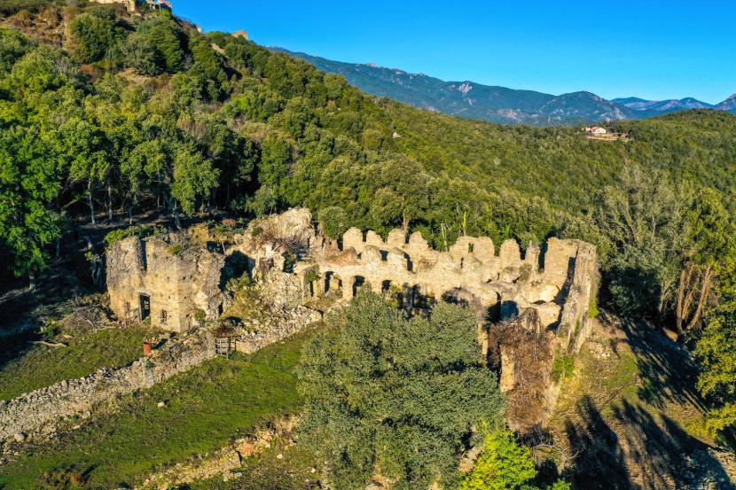 Montez jusqu’à ce village perché à 563 mètres d’altitude, offrant une vue imprenable sur la plaine orientale, les étangs et la mer.