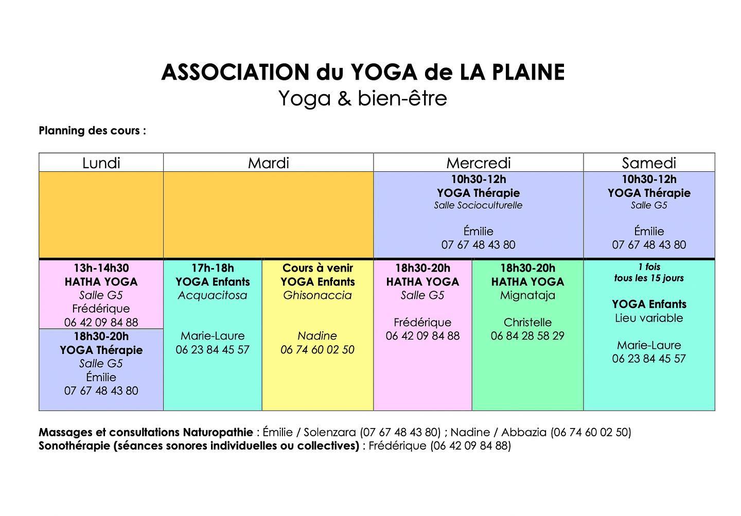 L’association YOGA DE LA PLAINE, très active sur notre commune, propose des cours collectifs de Hatha Yoga dans la salle du G5 Futsal