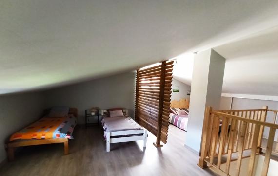 Voir plusAu cœur de la nature, face aux montagnes, ces petits logements mansardés, 1 grande chambre et leur cuisine privée accueillent de petites familles avec l'essentiel. Au calme, vous pourrez choisir de pratiquer de nombreuses activités, sportives ou autres !