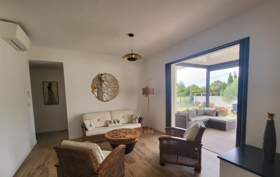 Grande villa rénovée en 2024 , d'une superficie de 180m²,située Marine de Solaro à 600m de la plage et 5km de Solenzara. Terrain clos, portail, maison tout équipée, véranda, salon , cuisine, 10 couchages, 4 chambres avec TV + pièce avec canapé convertible, sanitaire avec douch...