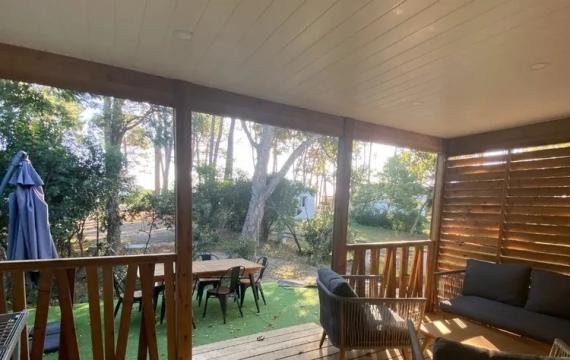 Mini villa de 40 m² comprenant une cuisine (four, micro-ondes, réfrigérateur congélateur, lave-linge, lave-vaisselle,plaques, vaisselles). 2 chambres, 1 lit 2 places + 2 lits simples salle de bain, WC, terrasse, barbecue, parking, draps , serviettes de bain fournis, lit bébé e...