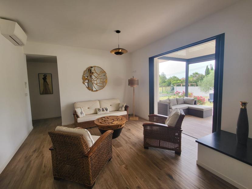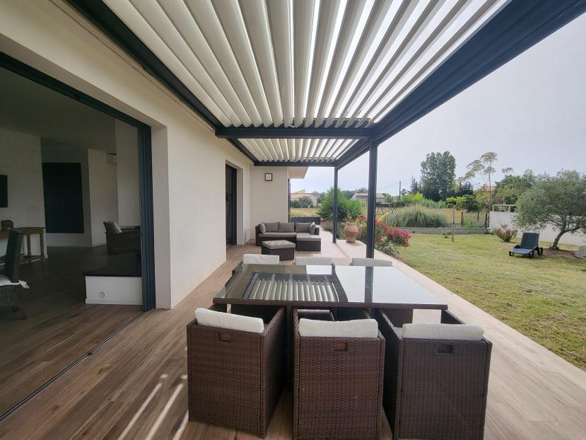 Belle maison d'architecte de 141 m², 3 suites parentales, tout confort, wifi, climatisation, terrasse bioclimatique, jardin. Entre mer et montagne à 6 km de la plage de Calzarellu et à 5km de la station thermale de Pietrapola les bains et de piscines naturelles dans la rivière de l'Abatescu