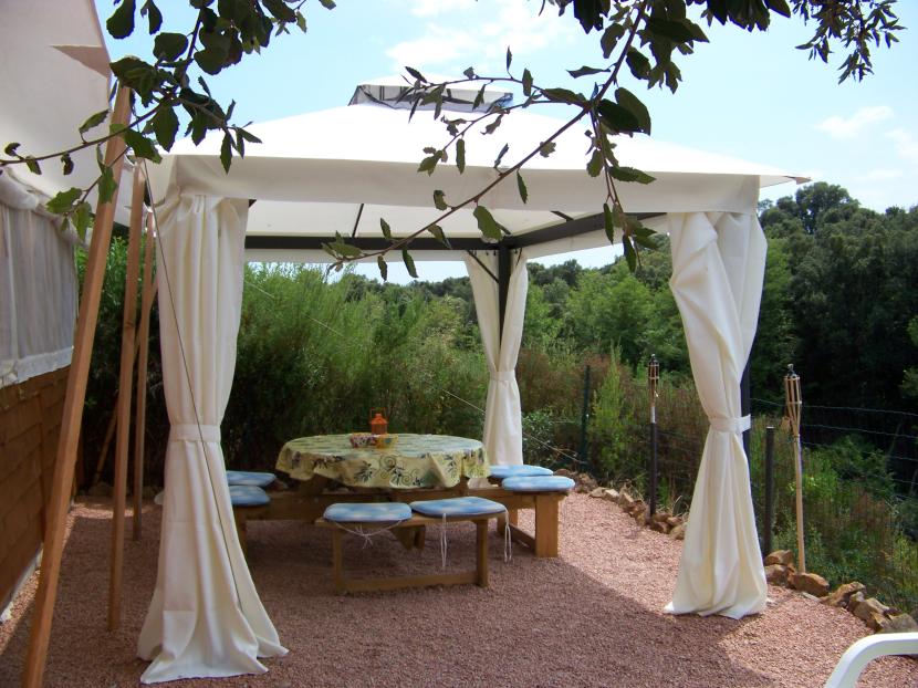 La tente-lodge les pieds dans l'eau, toute équipée au bord de la rivière, un mixte entre la tente et le chalet, est située au milieu d'un site naturel remarquable, calme, sans vis-à-vis. Le lodge offre un cadre idéal pour passer d'agréables vacances.