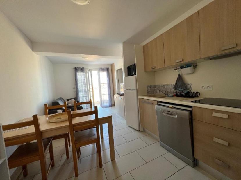 L'appartement comprend 2 chambres avec rangements, une salle de bains, wc séparés, un coin salon avec canapé et TV, une cuisine entièrement équipée (lave vaisselle lave linge, mini four, plaques électriques, frigo congélateur, cafetière, vaisselle…) et une terrasse aménagée avec vue sur la mer.