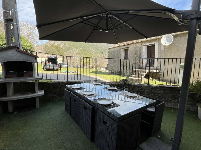 Aménagement confortable avec wc séparés. Jardinet et barbecue, belle vue sur la montagne .