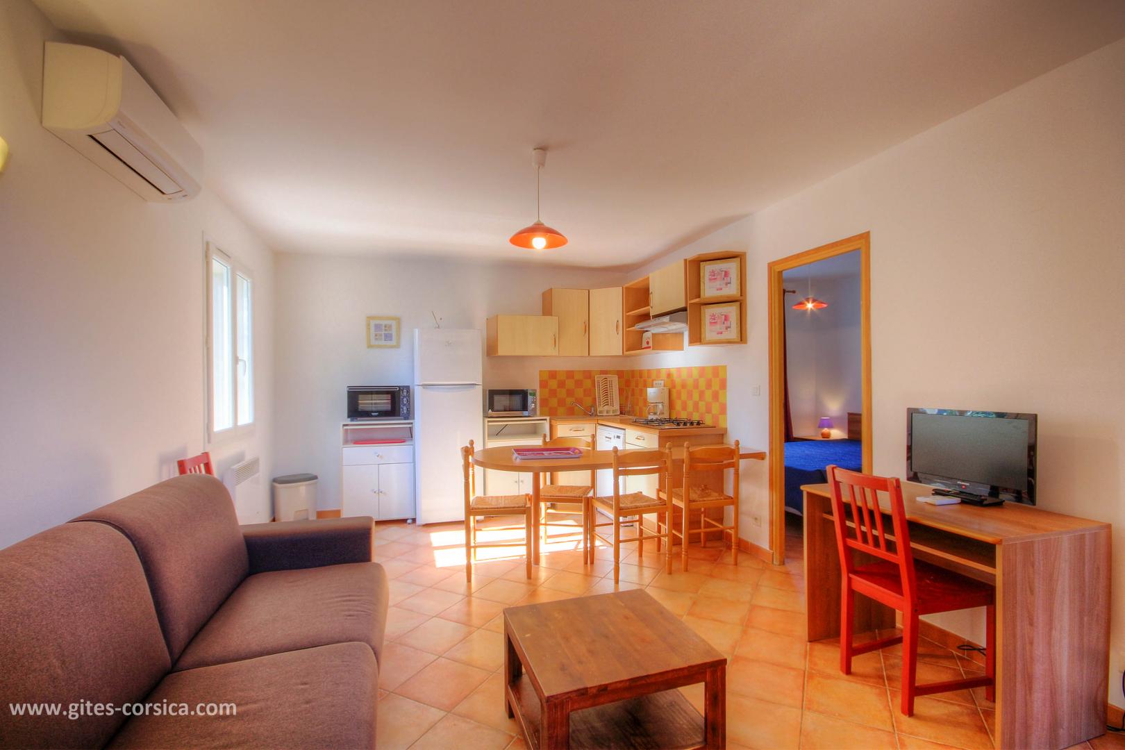 - Living room/kitchen with a sofa bed